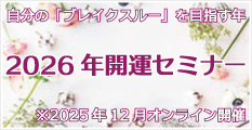 2025/09/09 2026年1月31日(土)に「東京」で開催の『2026年スペシャルセミナー』の概要をUPしました(対面形式)。今年の『2026年スペシャルセミナー』は、『2026年開運セミナー』+『開運ダイアリーの使い方セミナー』の2本立ての内容に加え、『オリジナル開運手帳(リフィル)(ご参加者1名様につき1冊配布)』加えたスペシャルバージョンになります。