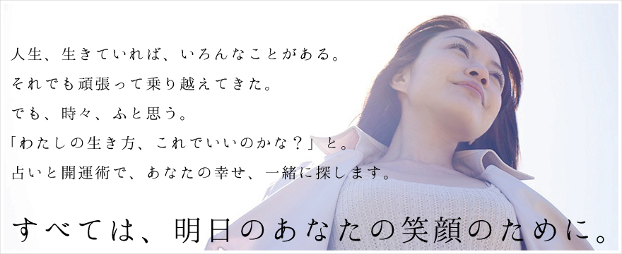 当事務所では、占術による鑑定のみならず、風水や人相、九星気学や奇門遁甲による吉方位旅行・引越などによる開運アドバイスもさせていただいております。